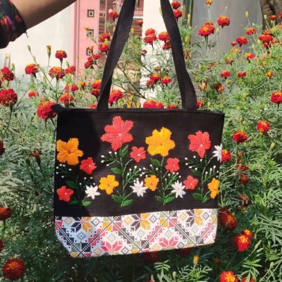 দুই কালার কম্বিনেশনের হাতের কাজের কলেজ ব্যাগ