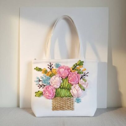 কলেজ ফ্যাশন: হ্যান্ড এমব্রয়ডারি জুট কলেজ ব্যাগ । Ladies Hand Embroidered Jute Tote Bag