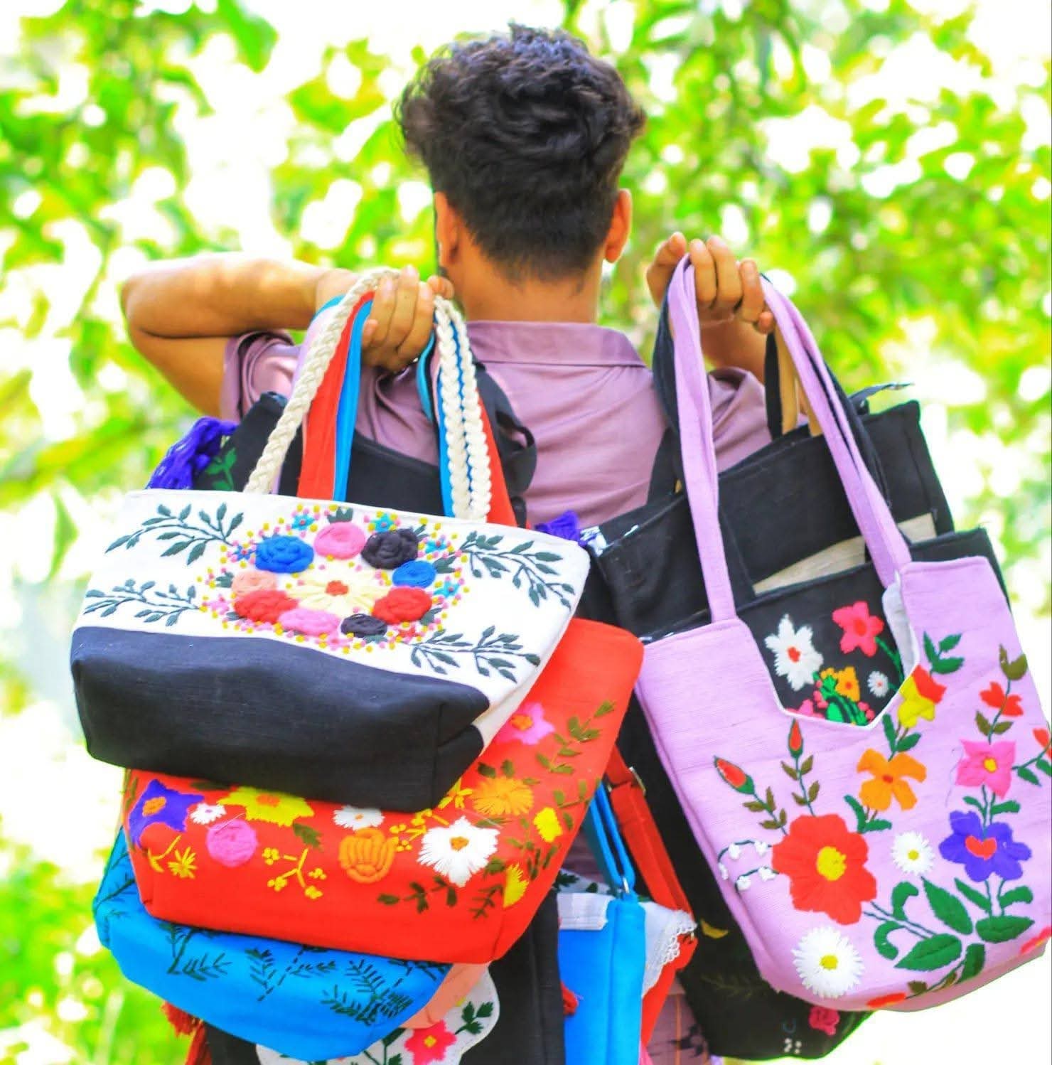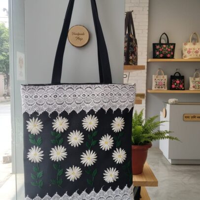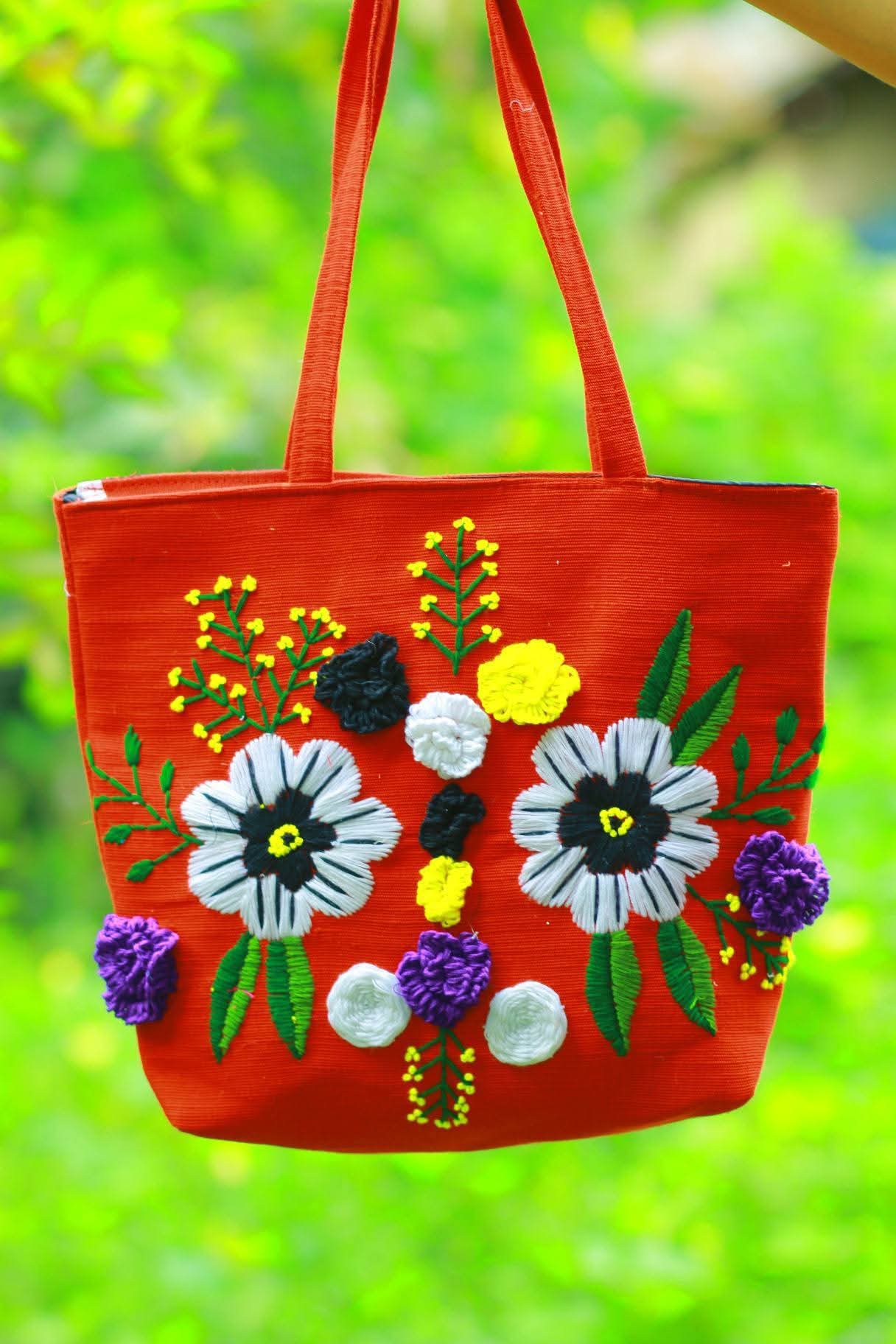 কলেজ ফ্যাশন: হ্যান্ড এমব্রয়ডারি জুট কলেজ ব্যাগ । Ladies Hand Embroidered Jute Tote Bag